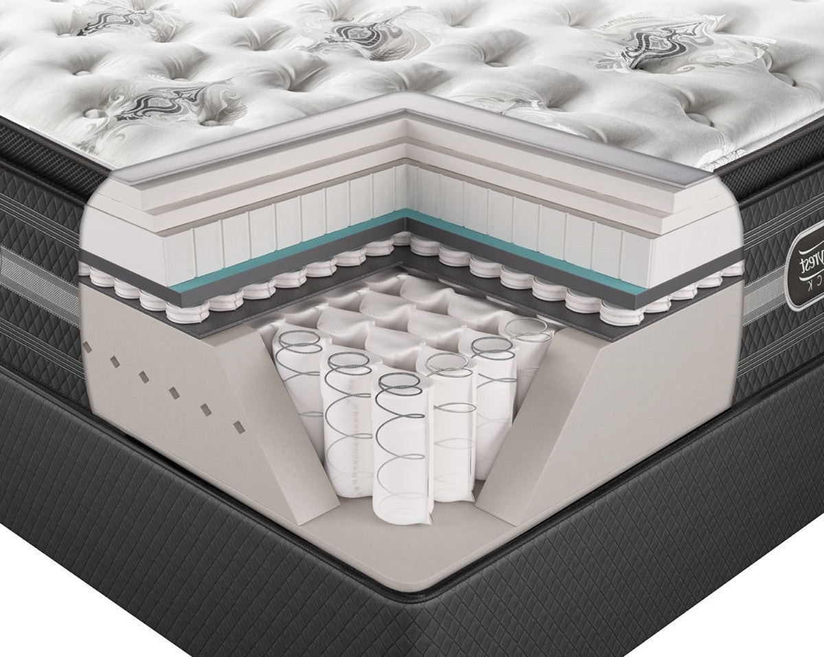 The quilt on the Mariela feels soft to the touch and includes Tencel fabrics to help regulate body temperature and moisture. The comfort padding layers are all high-quality and CertiPUR-US certified to meet the highest quality standards in bedding. Key comfort features include a layer of Black Ice Memory Foam, the newest comfort material in the Beautyrest line. This high-end comfort material contours to the body in order to reduce tossing and turning, and includes diamond particles as well as phase change material to draw heat away from the sleeping surface. Another key layer is Comfort Response Latex which helps create a healthier sleep environment by being anti-microbial and anti-dust mite. Back support comes from the top-of-the-line advanced pocketed coil system. This system uses alternating rows of 3-piece braided coils that provide the best in support in durability. The 360-degree foam encased edge is sturdy and allows you to sleep all the way to the edge without noticing a big difference in comfort or support.